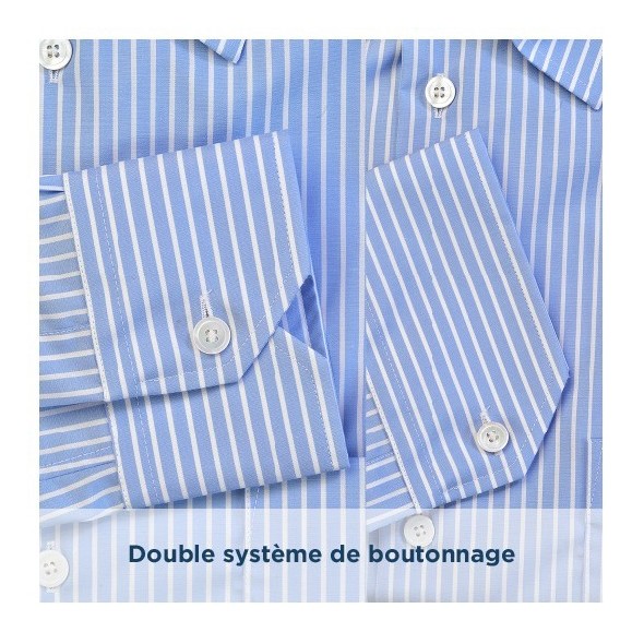 Poignets simples à double possibilité de boutonnage classique et/ou boutons de manchette