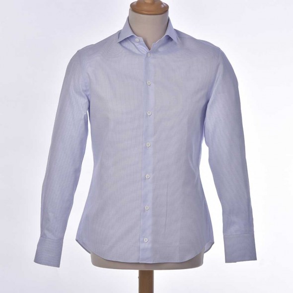 Double retors fils 100/2 réalisé à base de coton Egyptien compact ce qui donne à cette matière une construction à effet damiers. Ce tissu vous donnera une sensation de légèreté et le plaisir unique d'être à son contact. Ajustée comme il faut, ce modèle vous apporte chic et confort.